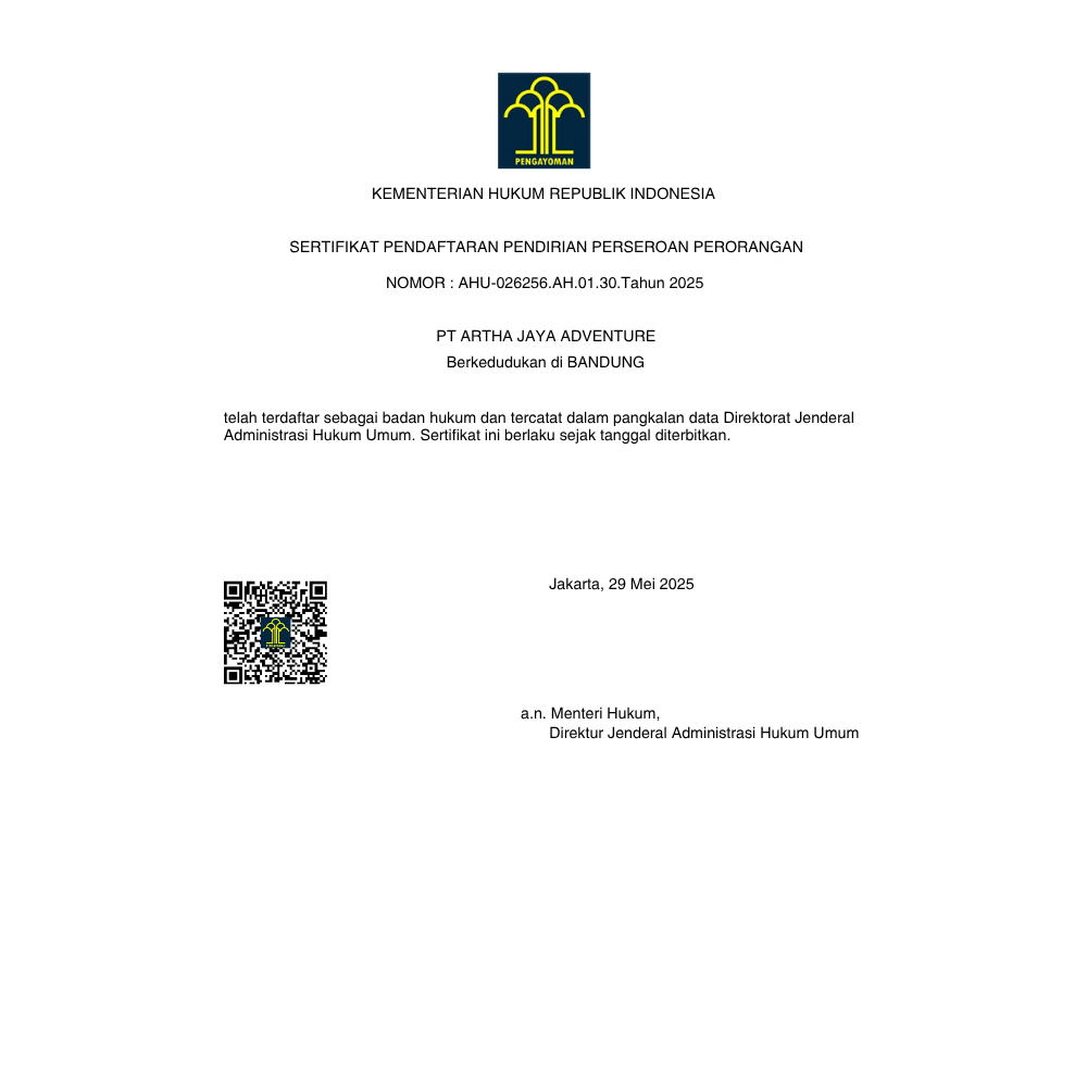 Di Naungi oleh PT. Artha Jaya Adventure dengan tim berpengalaman dan fasilitas lengkap, kami menghadirkan aktivitas yang aman, menyenangkan, dan membangun kebersamaan di tengah keindahan alam Pangalengan.